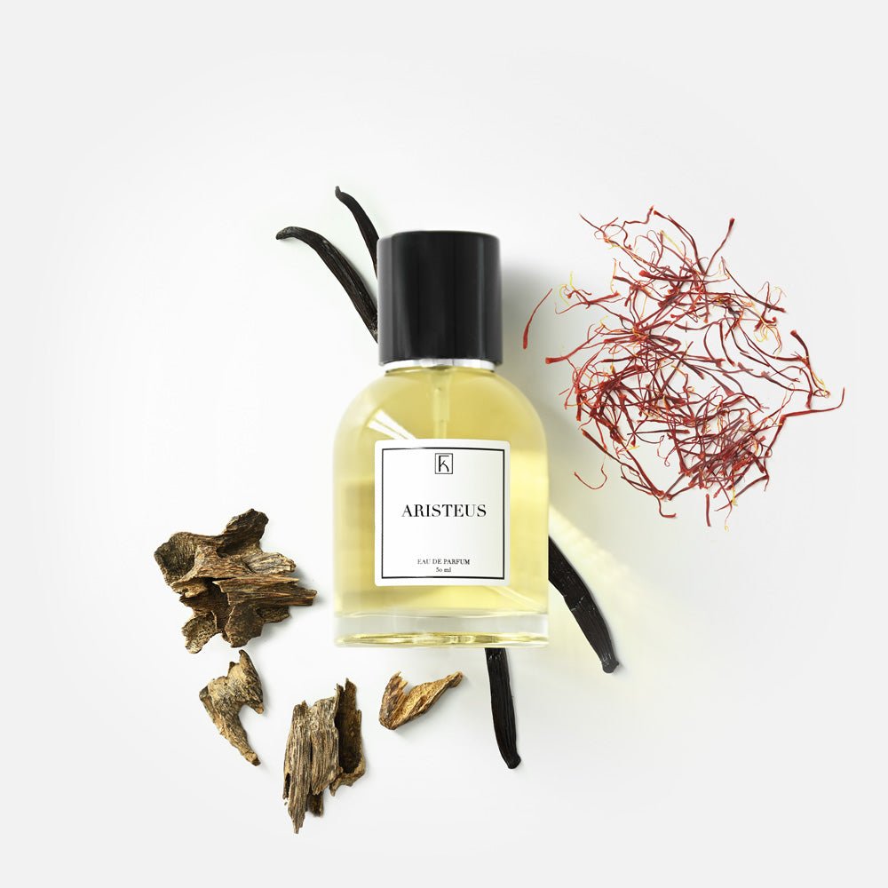 Aristeus, benannt nach dem Gott der Hirten und Bienenzucht in der griechischen Mythologie, entfaltet eine tiefgründige und verführerische Aura. Die Kopfnoten von Safran eröffnen einen betörenden Auftakt, der die Sinne einfängt. Die Herznoten von schwarzer Rose und Trüffel verleihen dem Duft eine geheimnisvolle Tiefe. Die Basisnoten von Vanille, Agarholz und Patschuli umhüllen den Duft mit einer warmen und verlockenden Aura, die die Essenz männlicher Anmut einfängt und verehrt.